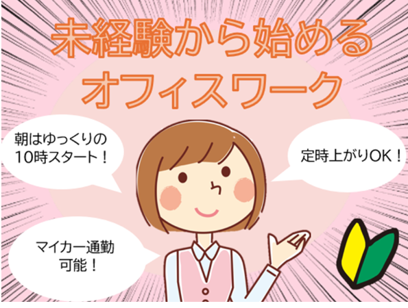 朝はゆったり10時スタート!残業ほぼなしの簡単事務!正社員登用で安定をGETした先輩も多数!履歴書不要でラクラク応募!