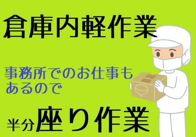 選べる時間!短時間勤務も!倉庫作業(動ける)と事務作業(座れる)のオイシイとこ取り!土日休み!大手企業&キレイな職場!未経験者もカンタン作業で安心スタート!無料送迎あり!マイカー通勤OK!
