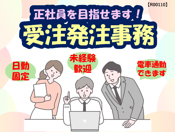 日払いOK|週払いOK|正社員登用あり|日勤のみ|パソコン入力|電話応対|受発注業務|事務スタッフ|サポート|高時給|キャンペーン時給あり|仕出し弁当注文可|個人ロッカー完備|休憩所完備|電車通勤歓迎|無料駐車場完備|交通費別途支給|