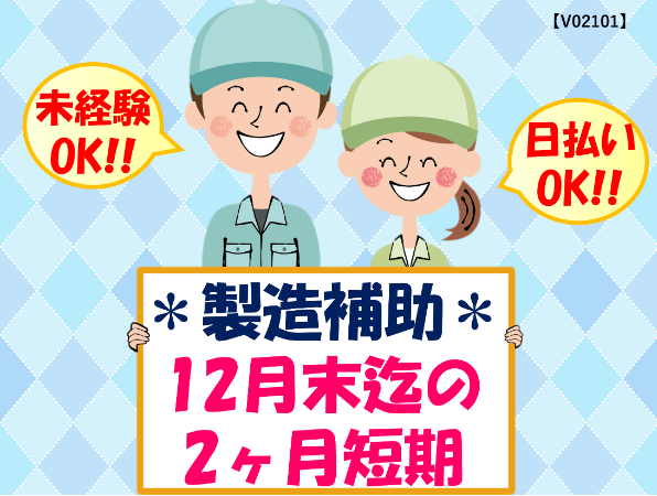 2ヶ月短期!12月末までの期間限定!自動車部品の製造補助スタッフ!高時給1550円以上!MAX月収29万円以上可!土日休み!残業少なめ!未経験OK!ブランクOK!