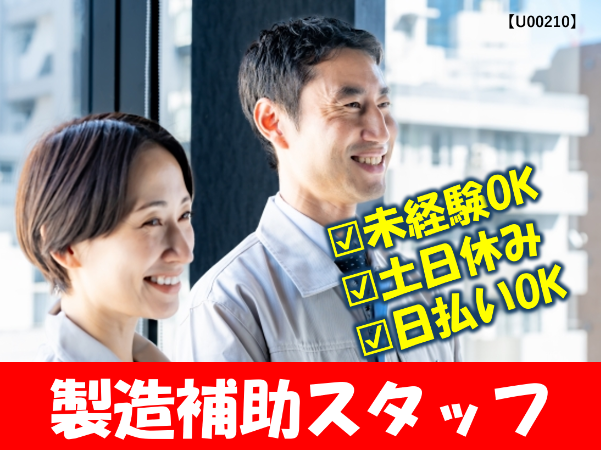 日払いOK|週払いOK|未経験OK|ブランクOK|事前の職場見学可|長期安定|残業ほぼナシ|土日休み|長期休暇あり|工場|製造補助|経験者尚可|作業着無償貸与|車通勤|無料駐車場完備|交通費別途支給|休憩所完備|喫煙所完備|
