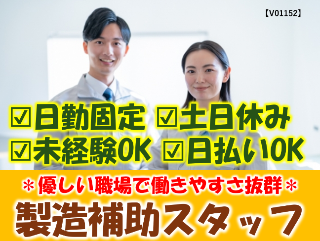 日払いOk|週払いOK|重量物なし|日勤のみ|土日休み|長期休暇あり|残業少なめ|未経験OK|ブランクOK|経験者尚可|もくもく作業|長期安定|冷暖房完備|休憩所完備|無料駐車場有|ガソリン代別途支給|派遣社員|製造|工場内作業|