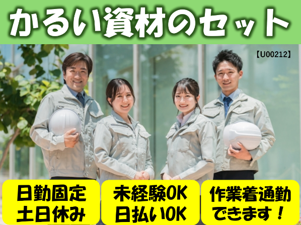 日払いOK|週払いOK|作業着通勤OK|未経験OK|ブランクOK|経験者尚可|長期安定|日勤|土日休み|残業ほぼナシ|長期休暇あり|職場見学可|キレイな職場|車通勤OK|無料駐車場完備|交通費別途支給|休憩所完備|作業着無償貸与|
