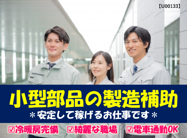 安定して稼げるお仕事!小型部品の製造補助スタッフ大募集!機械がエラーで止まらないようにするための補助作業です!電車通勤OK!小牛田駅より徒歩15分!