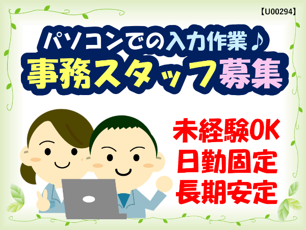 日勤専属の一般事務スタッフ募集!パソコンの基本操作ができればOK!データ入力や電話応対などの業務!希望休も取得可能!作業着のクリーニング代が無料の特典あり!