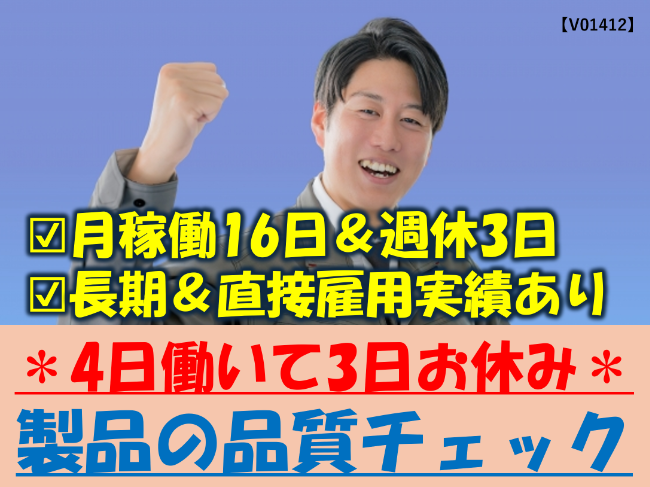 | 職種 | 工場内で製品の品質チェック |